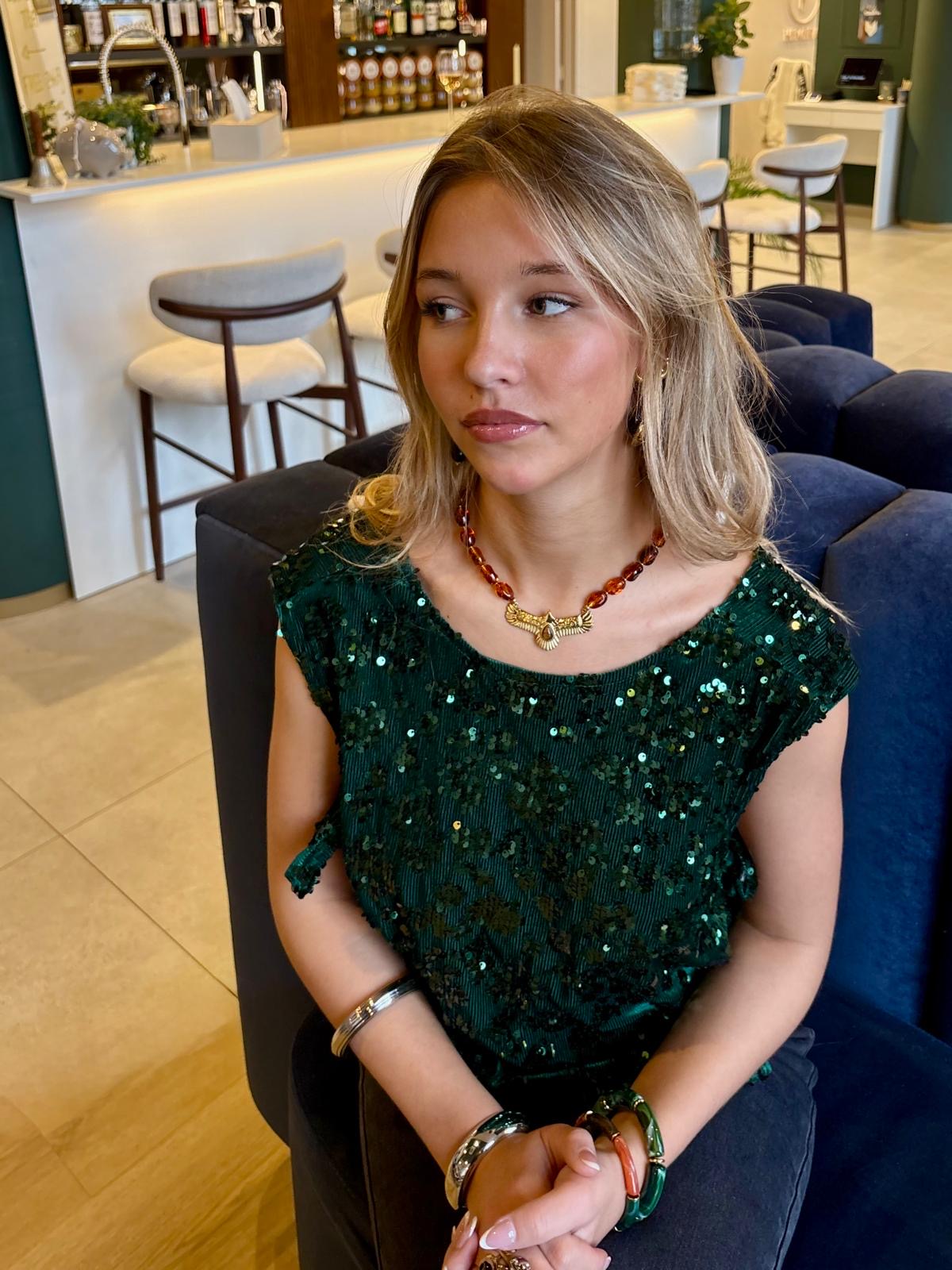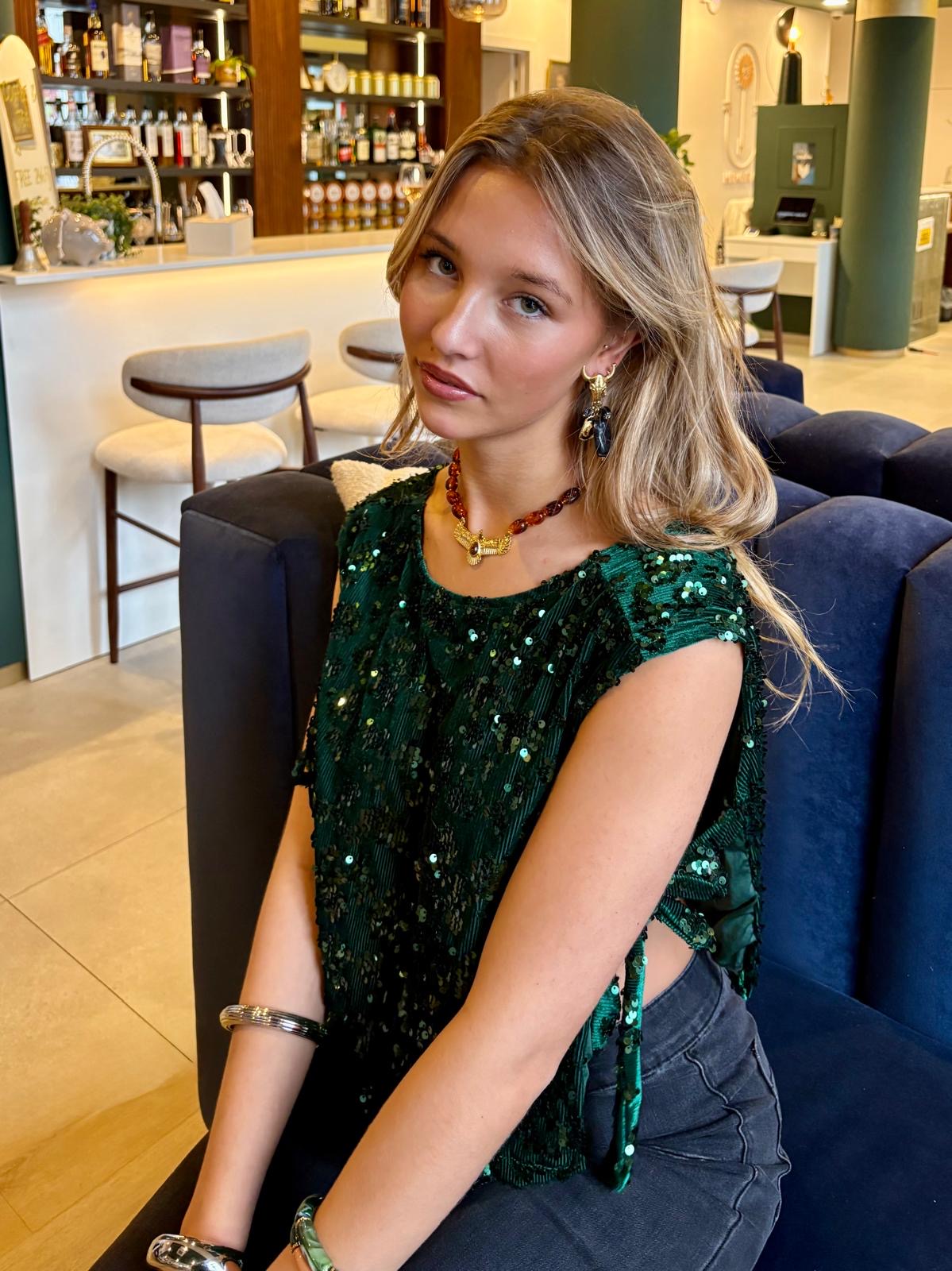 Haut vert à strass